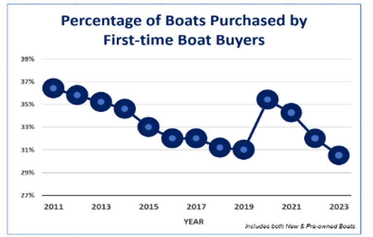 The total number of powerboats registered in the U.S. has been slowly declining over the past couple of decades. Much of this decline can be attributed to the fact that we are losing boat owners faster than we are replacing them. This is why it’s so critical for the boating industry to attract more first-time boat buyers. Unfortunately, it took a pandemic to lure more people onto the water, but during the years 2020 and 2021, the percentage of boats purchased by first-time buyers increased significantly. In fact, most of the growth in boat sales during this period can be attributed to people buying their first boats. This was a nice shot in the arm for the industry, albeit at an unwelcome cost.